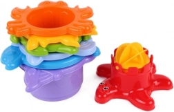 Tato hravá skládanka kombinuje stohování, přelévání a objevování. Kelímky ve tvaru mořských zvířátek mají různé velikosti a perforace, takže voda protéká jinak – děti tak baví experimentovat a učí se příčinným souvislostem. Díly se snadno vkládají do sebe, takže hračka nezabere místo a je ideální na cesty.