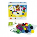- Balení obsahuje: 55 karet, 18 kuliček, přesýpací hodiny, 3 provázky, 80 žetonů a návod