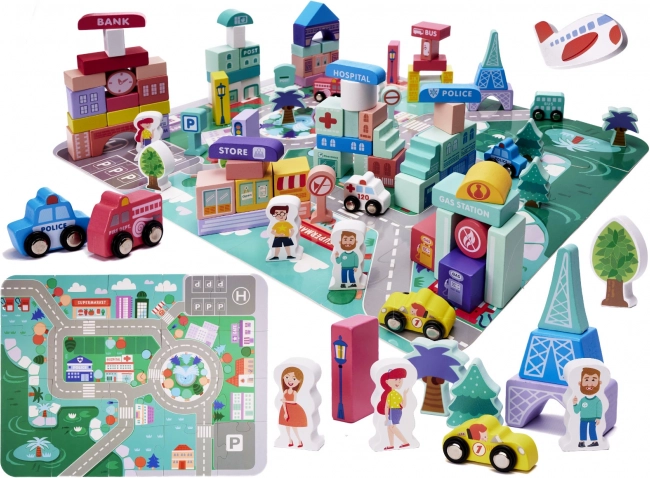 Zažijte radost z budování vlastního města s touto vzrušující stavebnicí s 128 díly. Obsahuje pestré budovy jako nemocnici, policii, banku a poštu. Tato hra podporuje představivost a pomáhá rozvíjet logické myšlení a manuální dovednosti.