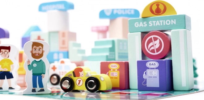 Součástí stavebnice jsou různé budovy jako banka, nemocnice, policejní stanice a pošta. Nechte děti tvořit a hrát si jako skuteční architekti.