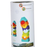Zaoblené díly umožňují stavět věž rovně i naklánět do stran. Děti si procvičí trpělivost, koordinaci a prostorovou představivost při každém pokusu.