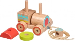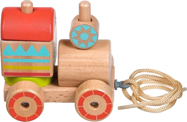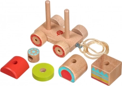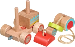 Dřevěná tahací mašinka kombinuje klasický vzhled a moderní vzdělávací prvky. Děti skládají barevné díly na správná místa, trénují úchop a objevují základní tvary a barvy. Po složení mohou mašinku pomocí provázku jednoduše táhnout a rozvíjet tak koordinaci chůze.
