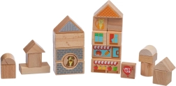 Různé tvary a potisky (okna, střechy, výlohy) umožní dětem stavět domečky, věžičky i celé ulice přesně podle vlastní fantazie.