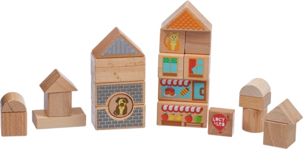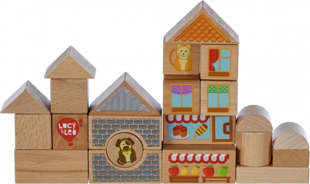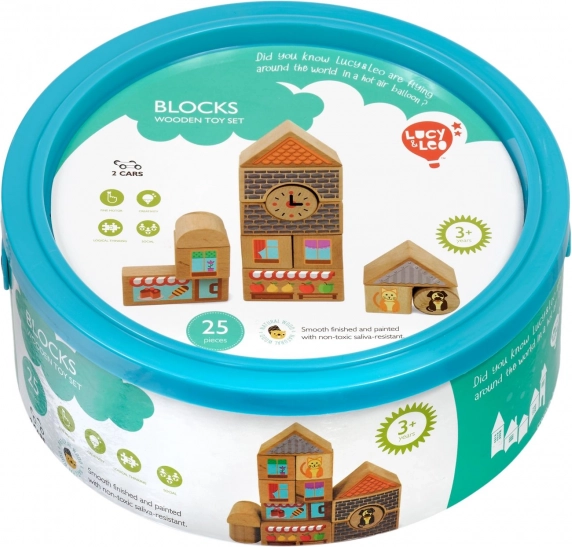 Objevte kouzlo kreativního stavění s dřevěnou sadou Lucy & Leo město. Sada obsahuje 25 kvalitních dřevěných dílů včetně 2 pojízdných autíček, různých tvarů a barev pro stavbu domečků a uliček. Ilustrované prvky jako okna, střechy a výlohy obchodů podněcují fantazii a tematickou hru. Hračka podporuje jemnou motoriku, logické myšlení a kreativitu, a po hraní ji snadno uložíte do praktického kulatého boxu s víkem a držadlem.