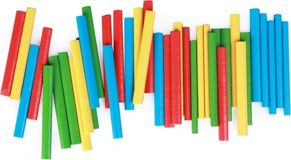 40 barevných počítacích tyčinek (délka 8 cm) pomáhá dětem lépe chápat množství, sčítání a odčítání.