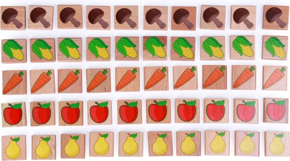 Kartičky s ovocem a zeleninou rozvíjejí vizuální vnímání, slovní zásobu a podporují přiřazování a kategorizaci.