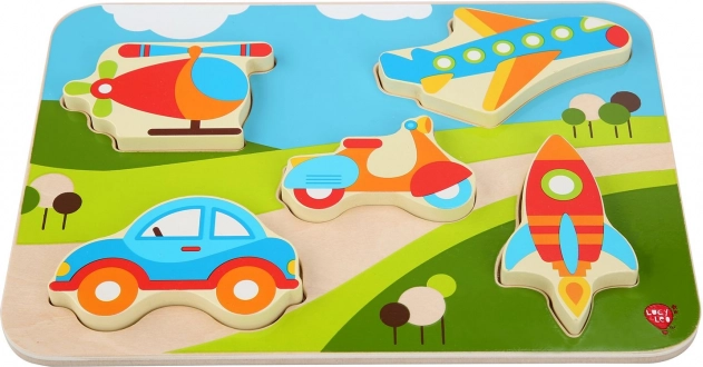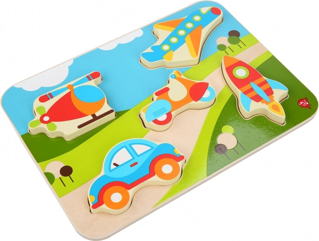 Objevte zábavné dřevěné puzzle s motivem vozidel, které rozvíjí jemnou motoriku, koordinaci oko–ruka a rozpoznávání tvarů. Velké, barevné dílky se dětem dobře drží a snadno se vkládají do správných výřezů. Ideální volba pro první puzzle pro malé nadšence do aut, letadel a dalších dopravních prostředků.
