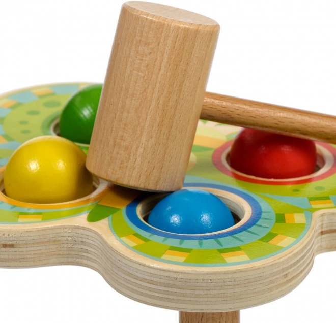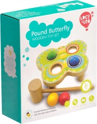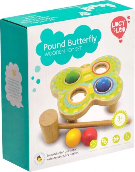 Zábavná dřevěná zatloukačka ve tvaru motýla se čtyřmi barevnými koulemi rozvíjí jemnou motoriku, koordinaci oko–ruka a soustředění. Děti kladívkem zatloukají koule do otvorů odpovídající barvy – bezpečná, odolná a vizuálně poutavá hračka z přírodního dřeva.