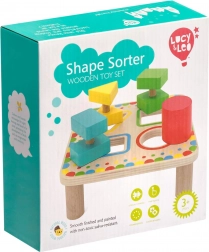 Tato originální dřevěná vkládačka přináší více než jen vkládání tvarů. Tři dvoudílné prvky je nutné nejprve správně spárovat a poté během vkládání pootočit, aby bez potíží prošly deskou. Děti tak přirozeně trénují koordinaci oko–ruka, prostorové vnímání a taktické přemýšlení.