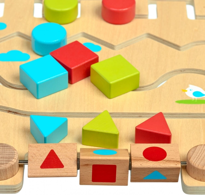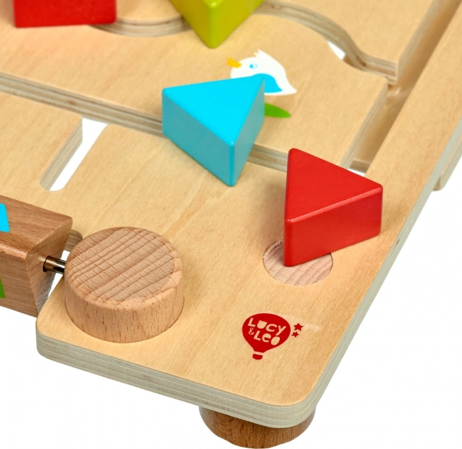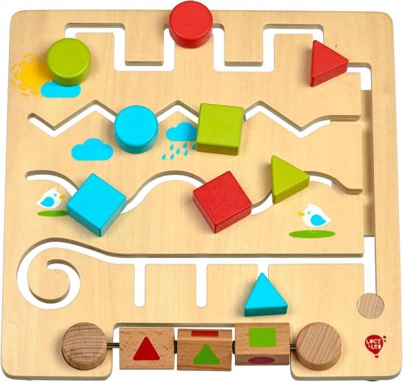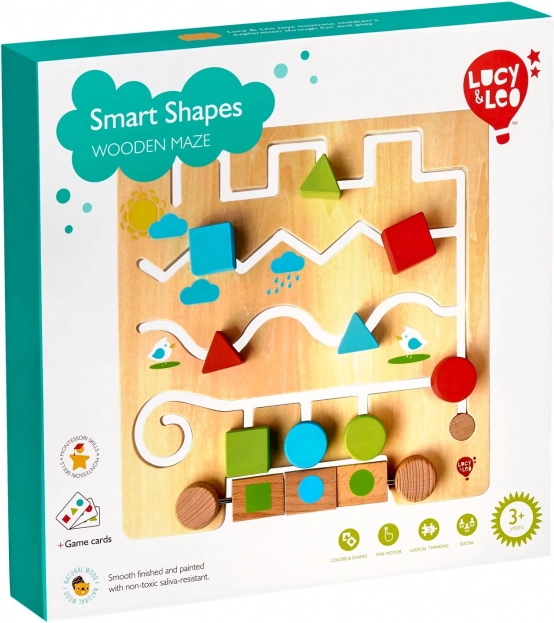 Dřevěné bludiště s geometrickými tvary LUCY & LEO je zábavná a vzdělávací hračka, která dětem pomáhá učit se tvary a barvy přirozenou cestou. Hladká herní deska s klikatými dráhami vede barevné dílky tak, aby odpovídaly tvarům na otočných blocích nebo zadaným vzorům na kartách. Díky robustnímu dřevu a bezpečnému zpracování je hračka vhodná pro každodenní hraní.