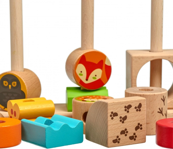 Kostky se zvířátky z lesa a pestré geometrické dílky udržují pozornost dětí a rozvíjejí fantazii. Ideální pro kreativní stavění i volnou hru.