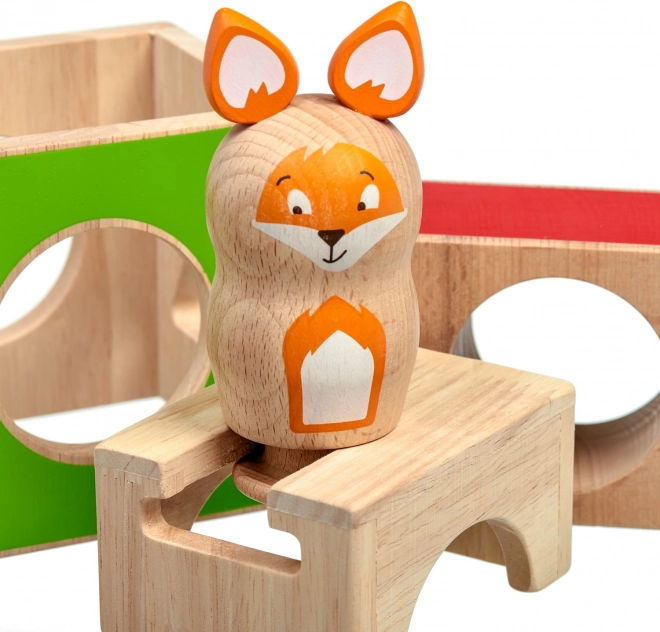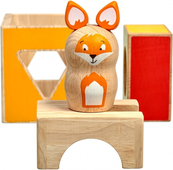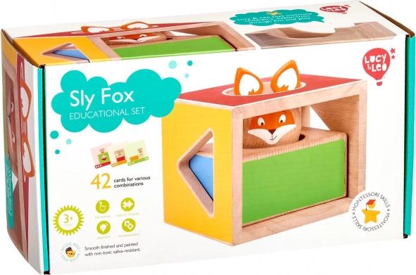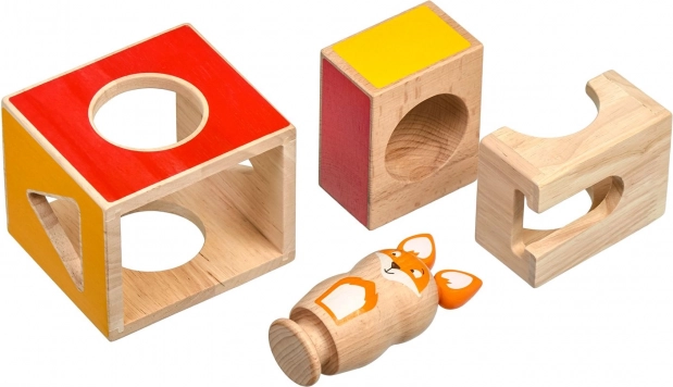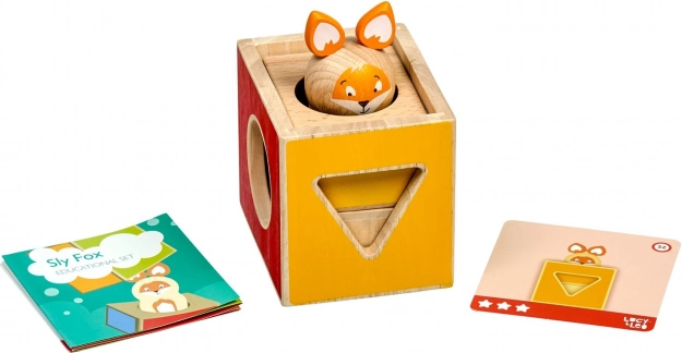Tato dřevěná vzdělávací hra obsahuje tři masivní kostky s výřezy různých tvarů, dřevěnou figurku lišky a sadu oboustranných karet s úkoly různé obtížnosti. Děti podle předloh staví a kombinují kostky tak, aby se liška správně „schovala“, čímž trénují strategii a prostorové vnímání.