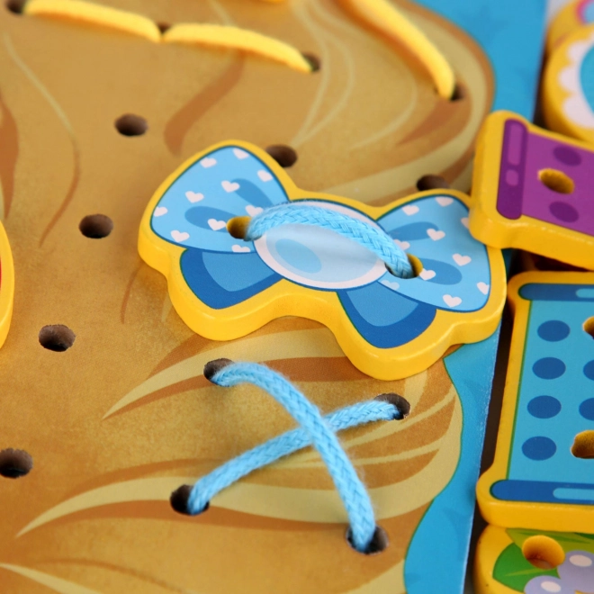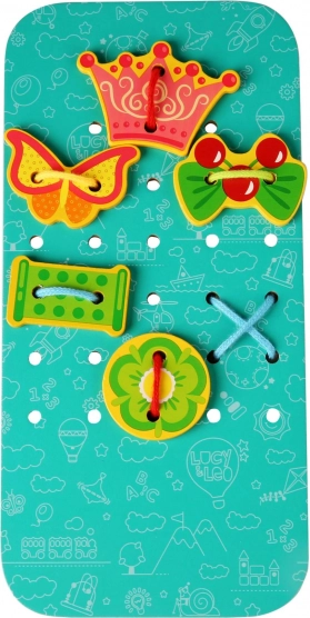 Šněrování a provlékání otvorů posiluje svaly prstů, koordinaci oko–ruka i soustředění. Ideální aktivita pro předškolní děti.