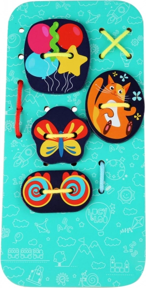 Objevte kreativní dřevěný šněrovací set Lucy & Leo, který podporuje jemnou motoriku, kreativitu a rozlišování barev a tvarů. Balení obsahuje 31 dřevěných dílků, 4 barevné tkaničky a velkou podložku s kouzelníkem, na kterou děti provlékají a připevňují ozdoby podle fantazie.