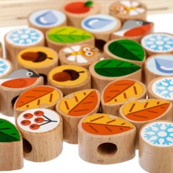 Hračka je inspirovaná montessori principy – rozvíjí logické myšlení, trpělivost, představivost a podporuje samostatnou hru. Díky tématu ročních období si děti procvičí i třídění a vnímání souvislostí.