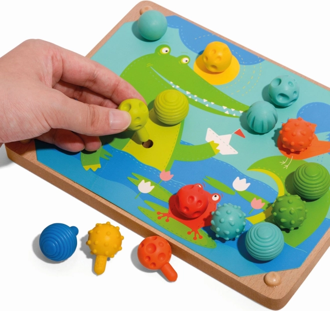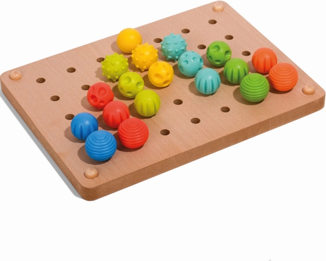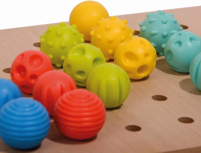 Set obsahuje 35 kolíčků s rozdílnými strukturami povrchu, ideální pro senzorický rozvoj dětí.