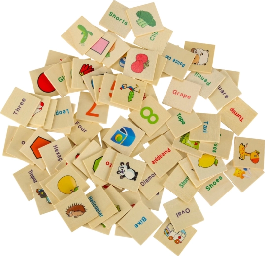 Velké tematické desky a 80 malých kartiček s ilustracemi a anglickými názvy učí děti poznávat kategorie, rozšiřují slovní zásobu a podporují vizuální paměť.