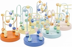 Na kovových prutech jsou nádherné dřevěné korálky, které děti mohou libovolně posouvat, trénujíce tak přesnost pohybů prstů a rukou.