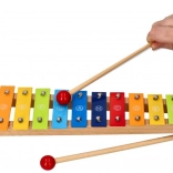 Odolný dřevěný rám a 12 kovových kláves poskytují příjemný zvuk a dlouhou životnost hračky.