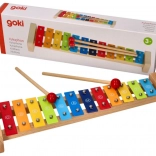 Barevný xylofon Goki se zpěvníkem Duha je skvělou volbou pro první seznámení s hudbou. Robustní dřevěná konstrukce v kombinaci s kovovými klávesami zajišťuje příjemný zvuk a dlouhou životnost. Díky názvům not na klávesách a barevnému vedení ve zpěvníku děti snadno pochopí souvislosti mezi barvami, tóny a jednoduchými melodiemi.