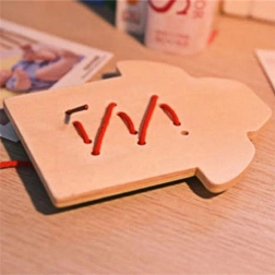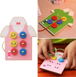 Dřevěné botky na učení zavazování tkaniček, 2 ks