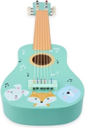 Dřevěná dětská kytara se zvířátky, tyrkysová