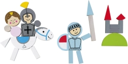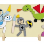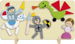 Magnetická tabulka a stojánky udrží všechny dílky na místě. Děti si snadno vytvoří vlastní středověké výjevy, které mohou kdykoli obměnit.