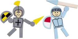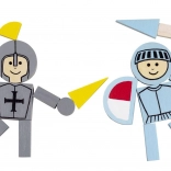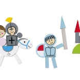 Barevné dřevěné prvky s hladkým povrchem umožní dětem skládat rytíře, štíty, kopí i končetiny – ideální pro rozvoj motoriky a představivosti.