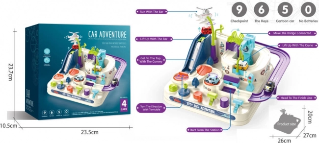 Ovládací tlačítka a otočná kolečka dávají dětem kontrolu nad zvedacími plošinami, pohyblivými platformami či mostem. Hra rozvíjí plánování a rozhodování – malí závodníci musí přemýšlet, jak nejlépe projet trasu a překonat nástrahy.
