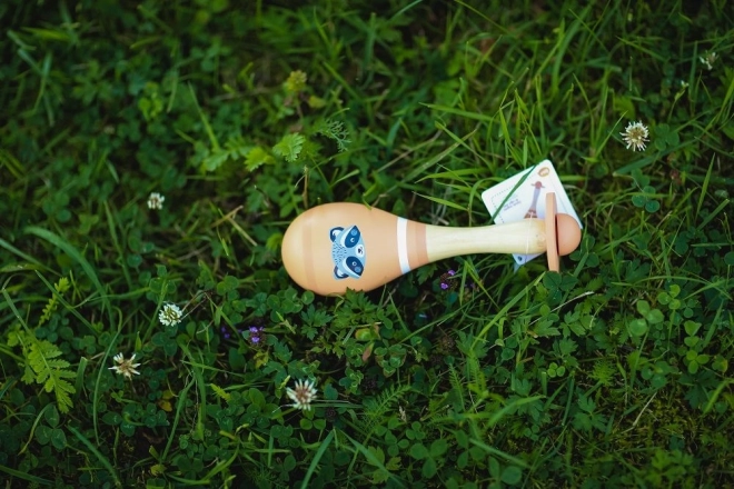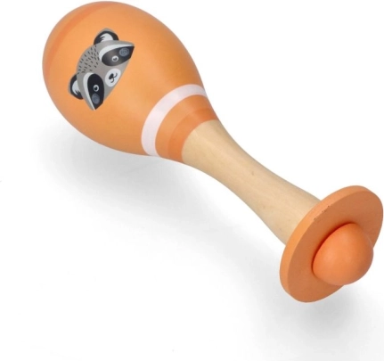 Tento dřevěný marakas je skvělou první hudební hračkou pro rozvoj sluchu, jemné motoriky a rytmického cítění. Pečlivě vyhlazený povrch a příjemný tvar usnadňují držení malými ručkami, zatímco veselý motiv zvířátka podněcuje představivost a hru.
