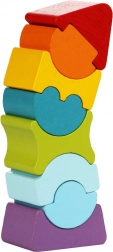 Skládání věže nabízí dětem možnost výzvy při umísťování zaoblených dílů tak, aby stavba byla stabilní, ale i výzvu, jak věž naklonit.
