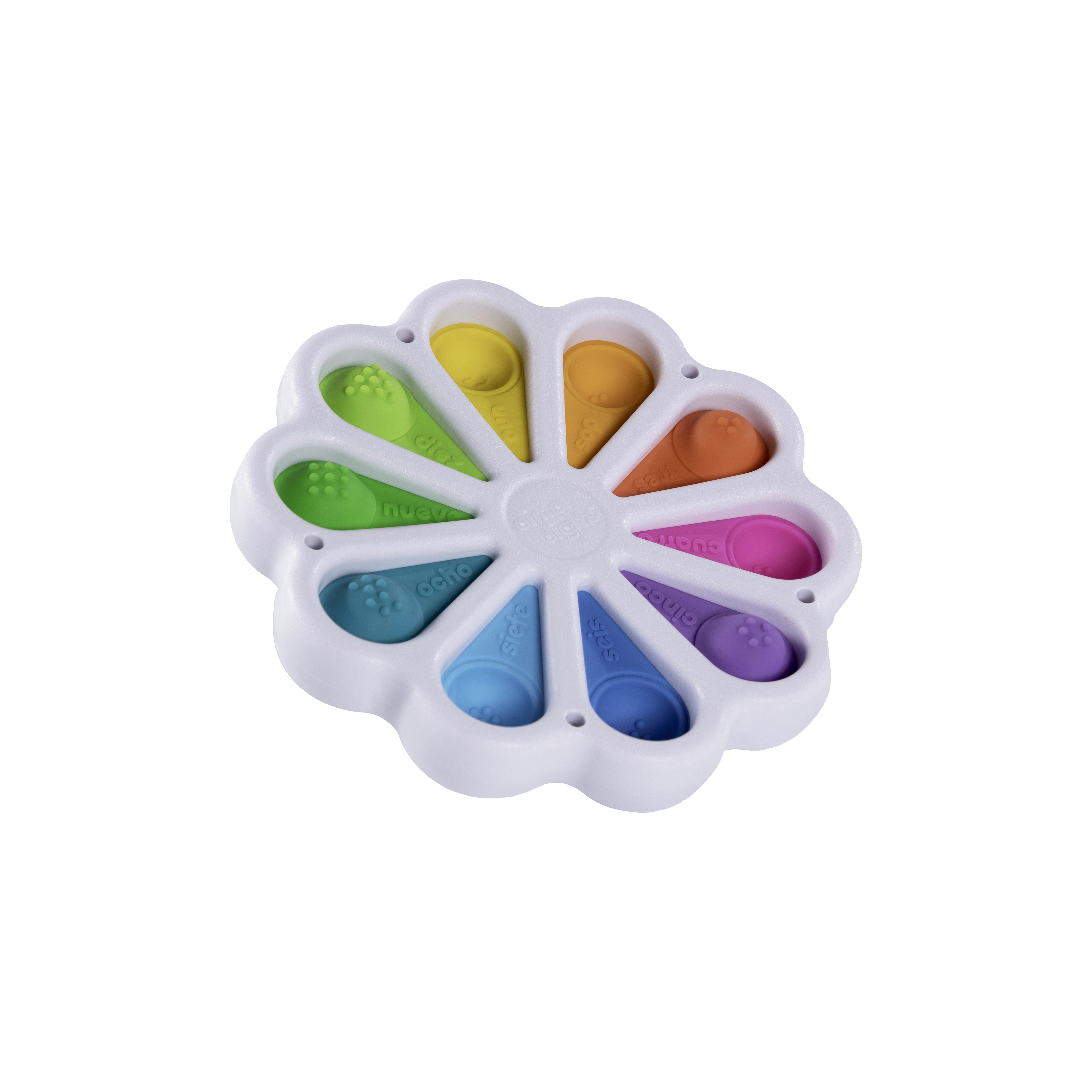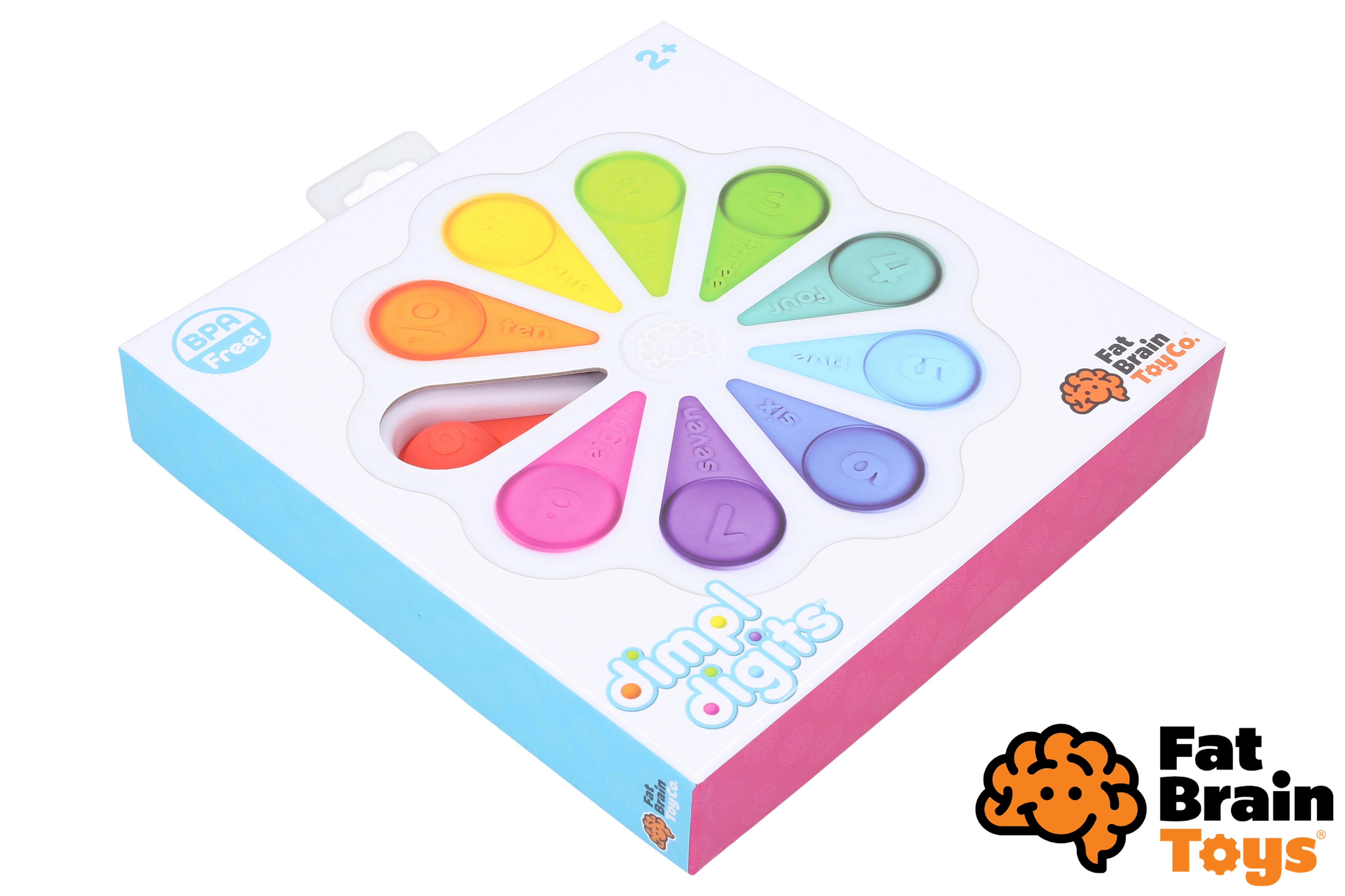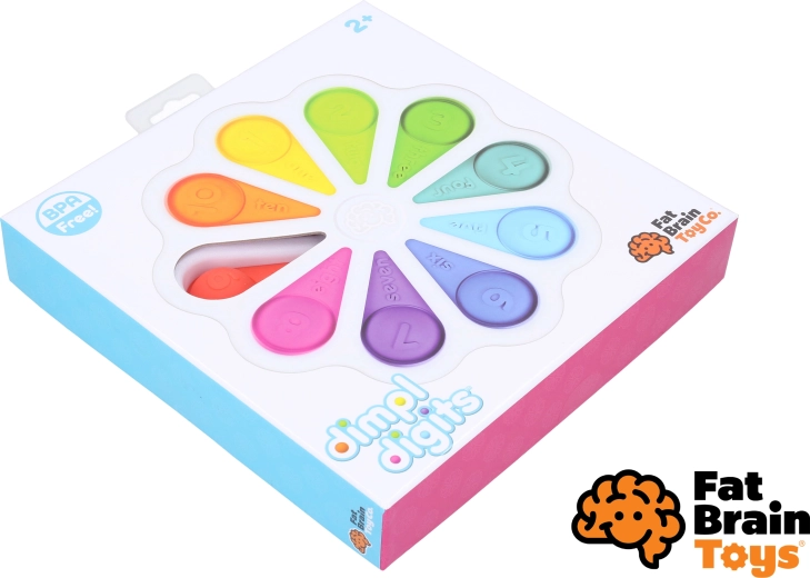 Objevte zábavnou smyslovou hračku Dimpl Digits od FAT BRAIN – květinové mačkací bublinky s číslovkami a počítáním, které podporují jemnou i hrubou motoriku, koordinaci oko–ruka a zdravý psychomotorický rozvoj. Barevné silikonové bubliny lákají k mačkání, učení barev a prvních čísel. Vhodné od narození.