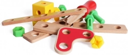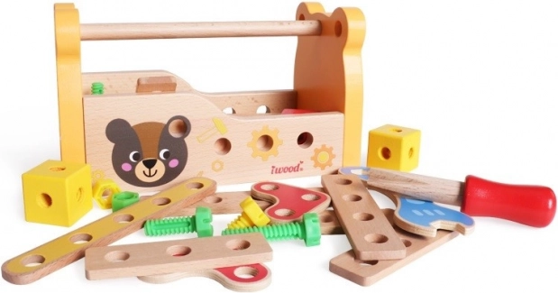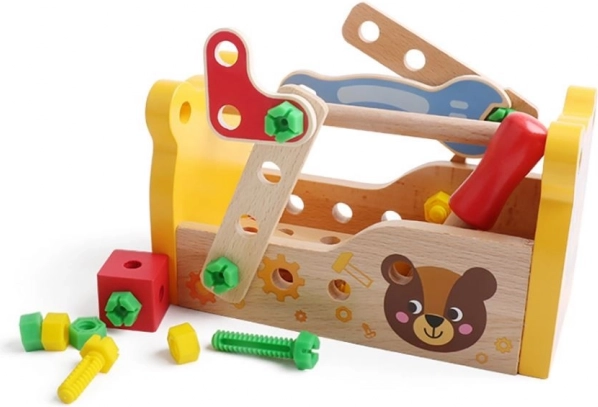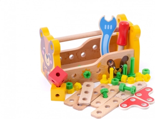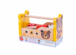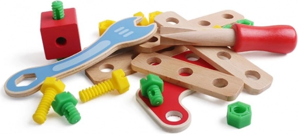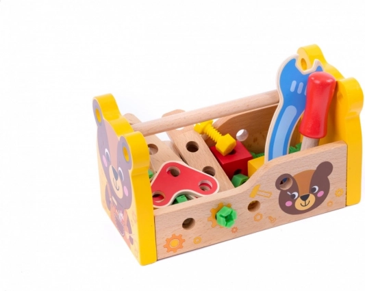 Dřevěný box na nářadí je nezbytnou výbavou každého malého automechanika. Uvnitř najdete vše, co potřebujete ke stavbě jednoduchých konstrukcí. Klíč, šroubovák, šrouby, matice a stavební prvky budou ideální pro vytváření staveb, které se poprvé objeví v dětské fantazii. Dřevěný box na nářadí je skvělým způsobem, jak podnítit kreativitu vašeho dítěte a zároveň si užít spoustu zábavy.