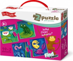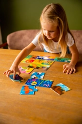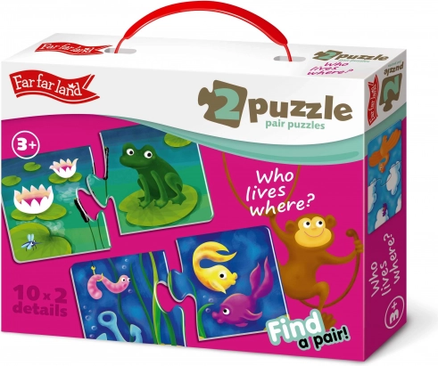 Far Far Land Puzzle je ideální vzdělávací hračka pro děti od tří let. Tato sada obsahuje 10 puzzle obrázků, z nichž každý se skládá ze dvou dílků – na jednom je zvířátko a na druhém jeho příbytek. Díky této hře se děti učí poznávat různé typy zvířat a jejich prostředí, čímž rozvíjejí svou schopnost třídění a kombinace.