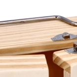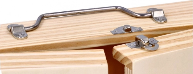 Kvalitní dřevěná skříňka s kovovými přezkami a rukojetí zajišťuje snadné přenášení a bezpečné uložení všech dílů.