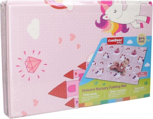 Podložku je možné snadno srolovat a uskladnit, tak, aby nezabírala mnoho místa. Díky krásným vzorům je vhodná pro všechny malé milovnice jednorožců.