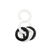 Propojitelná silikonová očka s reliéfem masírují dásně, podporují hmat a umožní snadné uchopení. S-háčky připevní hračky ke kočárku nebo autosedačce.