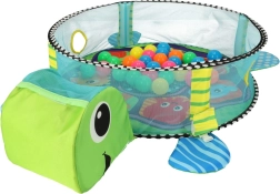 Pod jednou střechou získáte prostor pro hraní na zádech i na bříšku a po rozložení síťky také bezpečný míčkový bazének se 30 míčky.