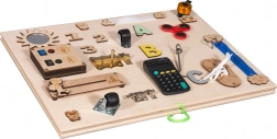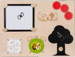 Tato dřevěná manipulativní deska je plná rozmanitých herních elementů, které pomáhají dětem rozvíjet jejich dovednosti. Děti si mohou hrát s různými interaktivními mechanizmy, které zaručí zábavu na dlouhé hodiny.