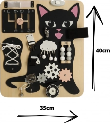 Kombinace černého koťátka se světlými dřevěnými detaily přitahuje pozornost a udržuje dítěti zábavu dlouhé hodiny.
