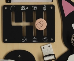 Pomocí interaktivních prvků jako jsou převodovky, zámky a tkaničky, se děti učí jemné motorice a zlepší si preciznost pohybů rukou.